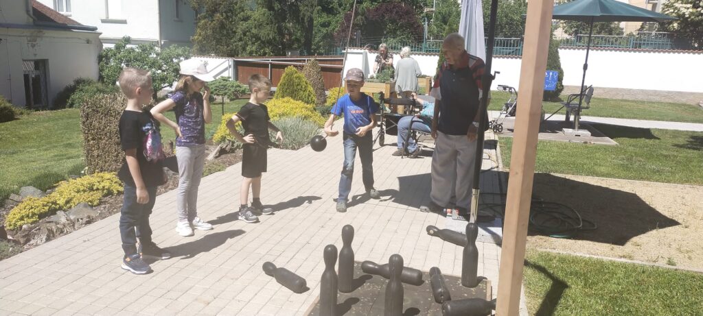 V pondělí 20. 5. část dětí ze 4. oddělení ŠD strávila poslední odpoledne s babičkami a dědečky v domově pro seniory. Už se na sebe vzájemně těšili, velkou zábavou bylo pro ně sázení květin, zalévání a úklid. Společně si zahráli venkovní kuželky, povídali si a zazpívali. Užili si příjemné chvíle a domluvili jsme se na dalších setkání. Od září máme v plánu společné tvoření, malování, hry a předvánoční pečení. Posíláme pozdravy všem babičkám a dědečkům do domova a děkujeme za pěkný společný čas.