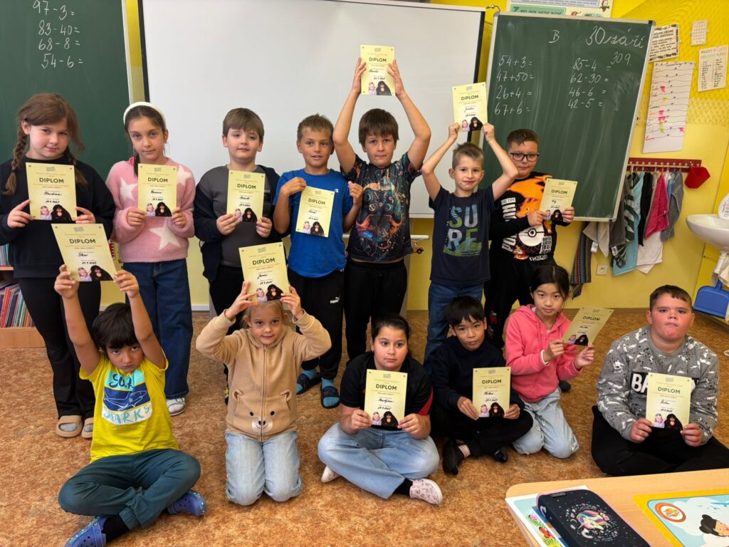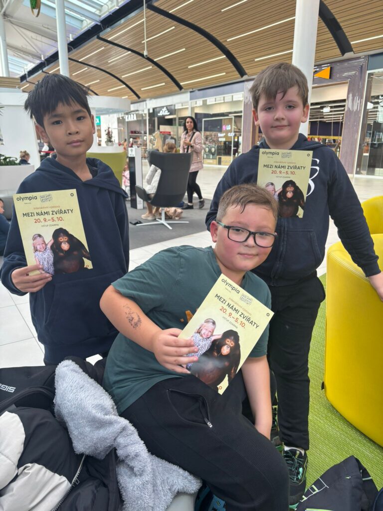 V pondělí vyrazila 3.B do Olympie na interaktivní výstavu „Mezi námi zvířaty“. Zjistili jsme jakému se váhově přibližujeme ( většinou jsme koaly) i jak daleko skáčeme ( jako kobylky) Jukli jsme na svět očima hmyzu, psa a dalších živočichů. Během výstavy jsme hledali otisky stop některých zvířat, které jsme si natiskli na naše záložky. Cesta zpět ubíhala velmi rychle, dokonce jsme vyběhli se zvířecím elánem schody (jsme přece ty kobylky) a na památku nám zůstala záložka, diplom a na chvíli i sladká odměna.