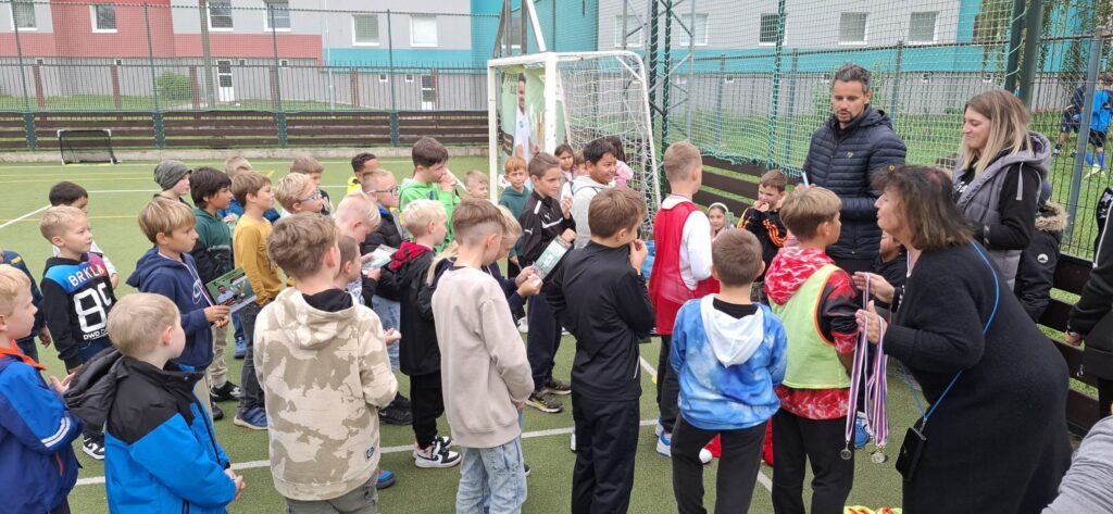 Dne 1. října měli žáci sportovní odpoledne na školním hřišti s panem Honzou Váňou. Byli rozděleni do čtyř skupin, v prvním kole si zahráli házenou a v druhém kole fotbal. Výherci si odnesli medaile. 🏆