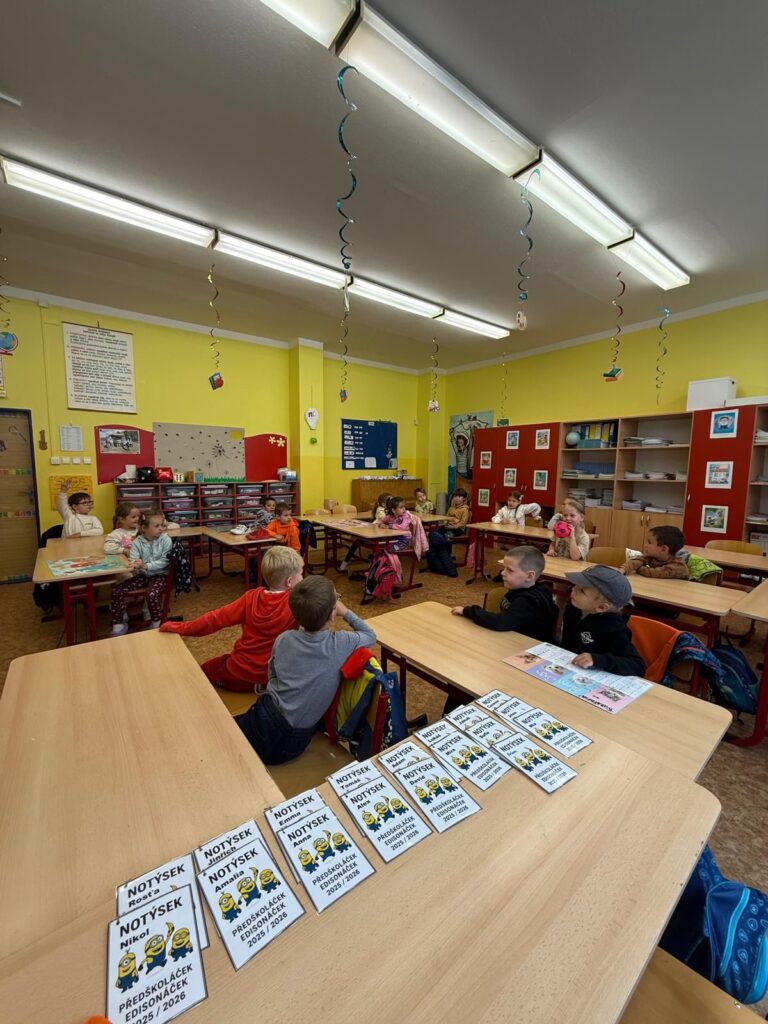 1. října jsme s radostí přivítali naše malé předškoláky v první lekci kroužku, který je na téma Mimoni. Pod vedením usměvavých paní asistentek Sokolové a Burgetové se děti s chutí pustily do objevování světa školáků. Naše třída je plná zvídavých hlaviček a od prvního dne to v Edisoňáčku žije. 📝🎒Formou her, tvoření, básničky a pohybových aktivit si děti hravě osvojí dovednosti a znalosti, které jim usnadní vstup do první třídy. Každé setkání přináší a přinese nové zážitky, radost a kamarádství – přesně tak jak to má být!