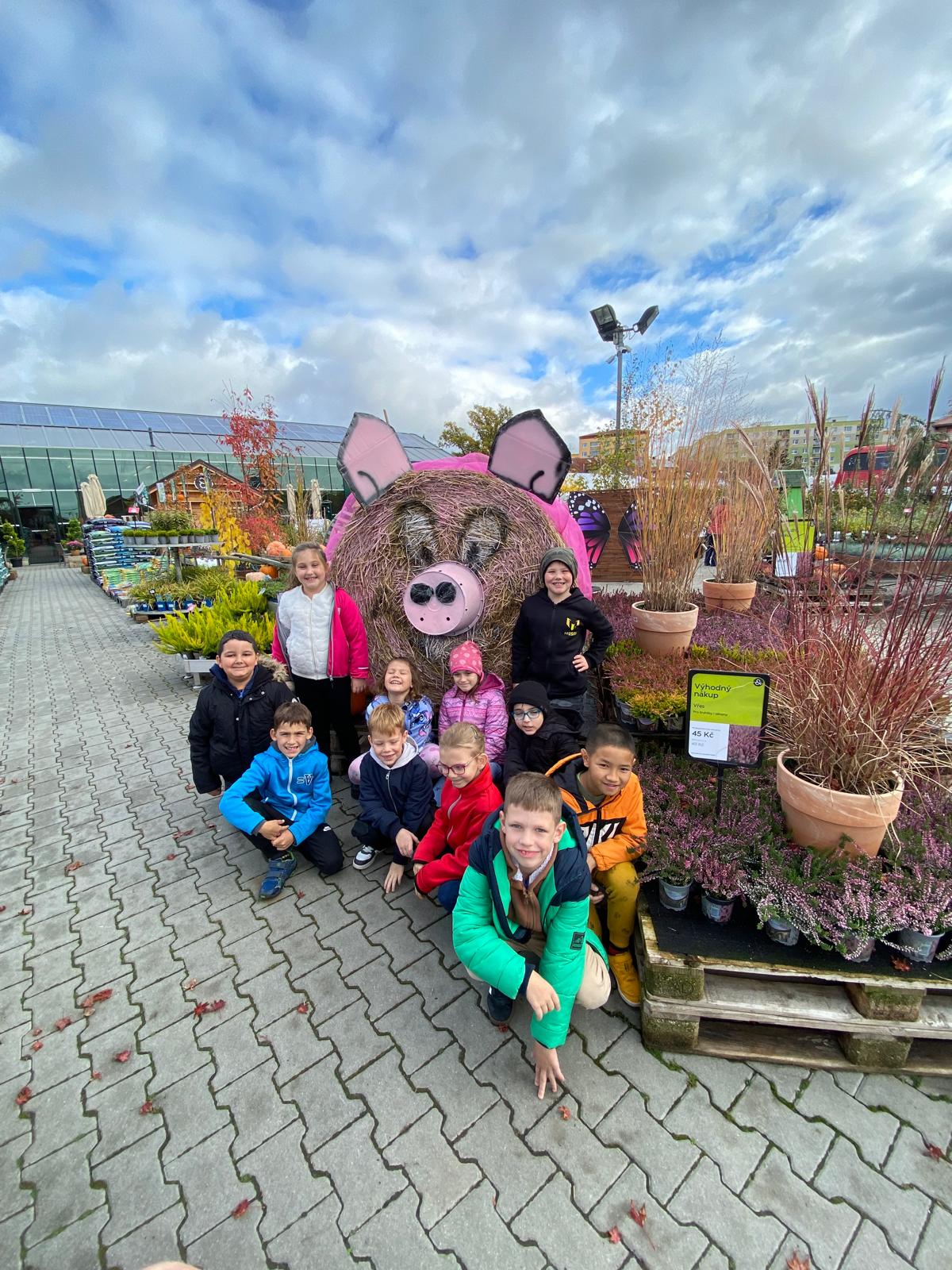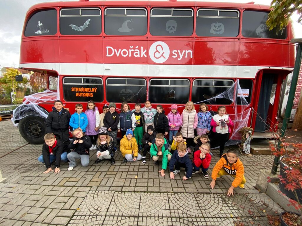 Strašidelná výstava v zahradnictví Dvořák a syn přivítala třídu 2.A dne 17. října 2025. Žáci si užili halloweenskou výzdobu. K vidění byly dýně s veselými i strašidelnými obličeji, čarodějnice, pavouci v pavučinách, netopýři a další. Společně jsme si ukázali různé druhy dýní, rostlin a stromů, bloudili ve strašidelném bludišti a prohledali strašidelně vyzdobený anglický dvoupatrový autobus double-decker. Zaměstnanec zahradnictví nás navíc přizval na krmení velkých i malých ryb. Všechny nás to moc bavilo a těšíme se, jakou halloweenskou výzdobu uvidíme příští rok.