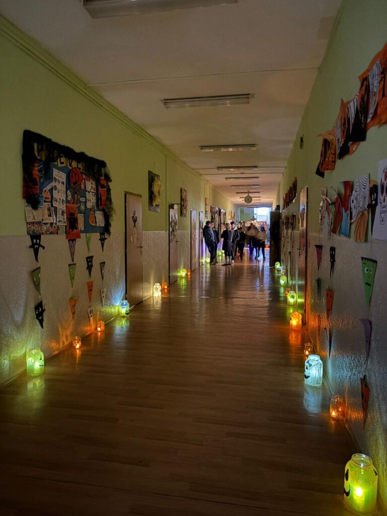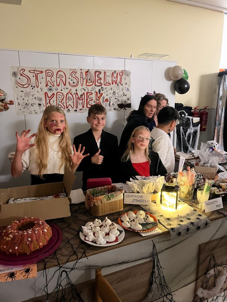 Nechyběl ani stánek se sladkostmi, soutěže pro děti a samozřejmě nádherně vyzdobená škola, která dýchala pravou halloweenskou náladou.