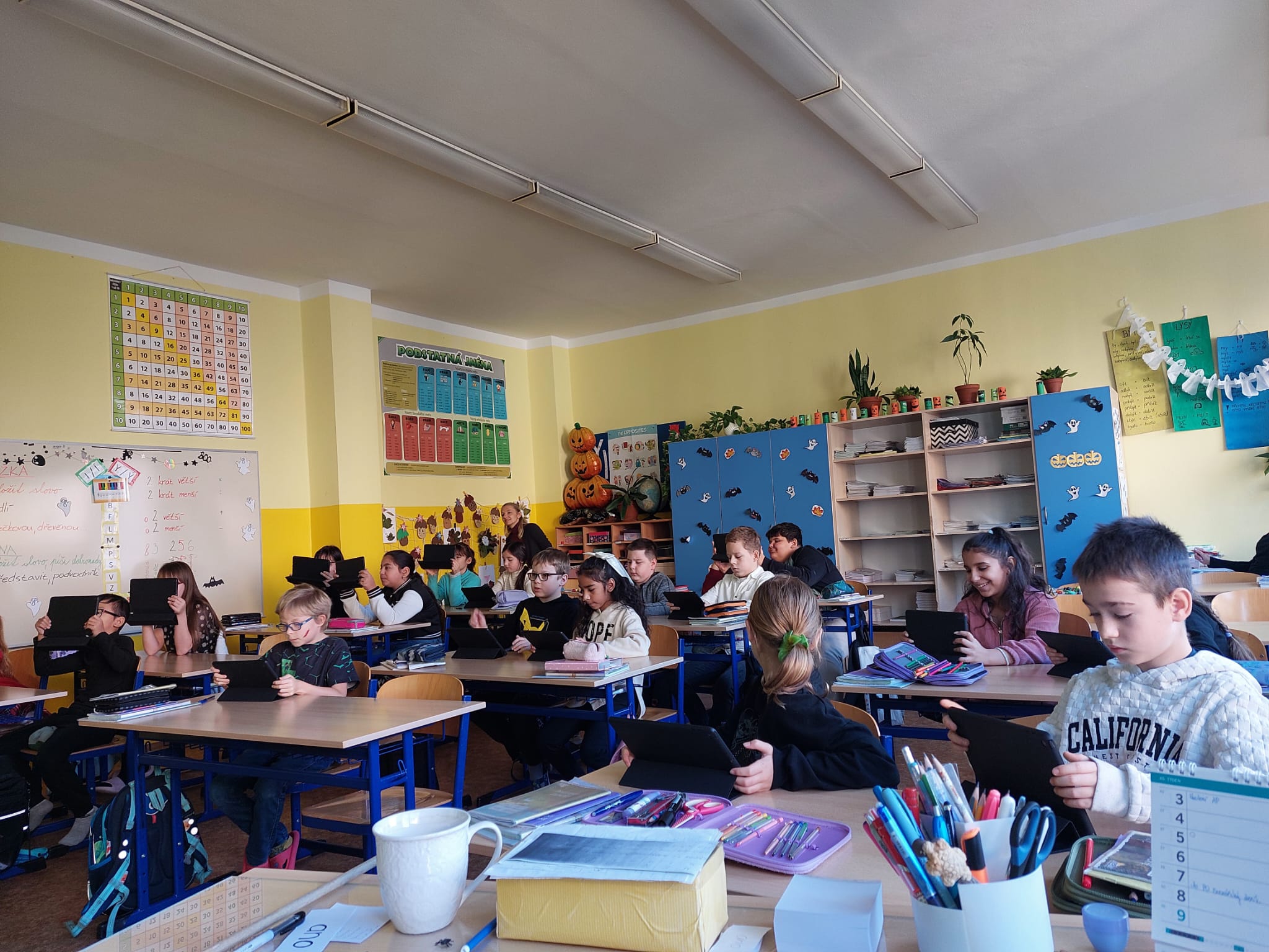 V rámci výuky pracujeme se 4.B s tablety a webovou aplikací Wordwall, která nabízí mnoho interaktivních her a aktivit. Tímto způsobem si opakujeme osvojené učivo, procvičujeme si nové poznatky a zároveň se bavíme při soutěžích mezi sebou. Baví nás si takto zpestřit výuku pomocí moderních technologií a učit se jinak než jen z učebnic.