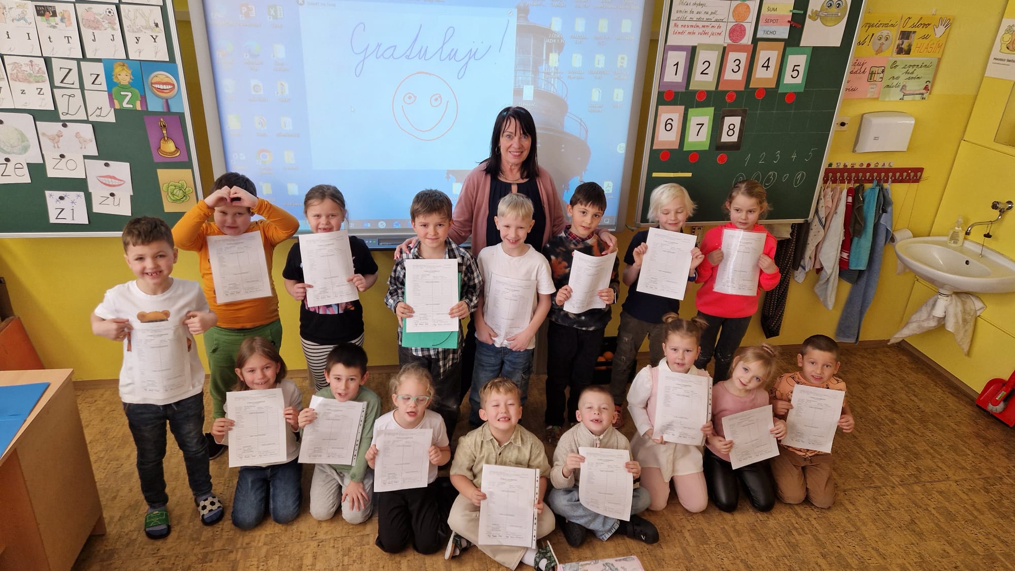 Dnešní den byl pro naše prvňáčky opravdu slavnostní. Poprvé si převzali výpis z vysvědčení za první pololetí a důvod k radosti byl veliký. Všichni žáci si vedli skvěle a svými výsledky udělali radost sobě i rodičům.