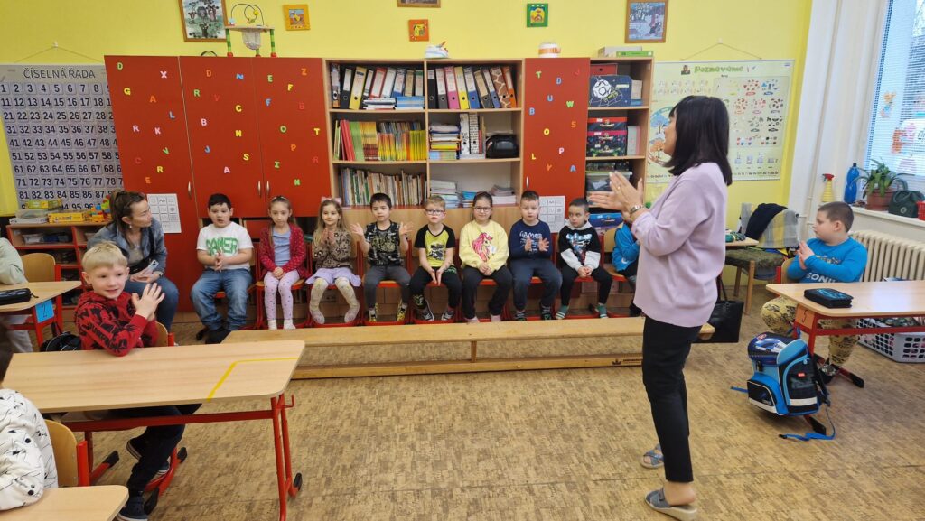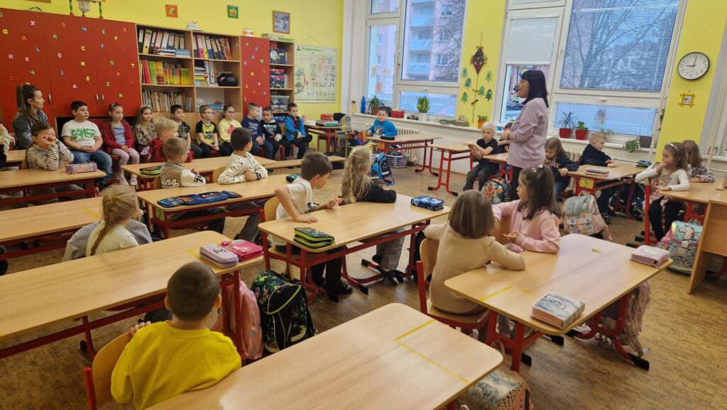 Dnes nás navštívily děti ze školky – naši budoucí prvňáčci. Přišly se podívat, jak to ve škole chodí a jak pracují opravdoví školáci. Předškoláci se zapojili do všech činností – počitali, poznávali písmenka, určovali tvary i barvy. Nechybělo ani zpívání písniček, tleskání a recitováni básniček. Děti si také vyzkoušely práci u tabule. Na závěr si každý malý návštěvník odnesl Diplom za účast v naší škole jako památku na dnešní společné setkání.