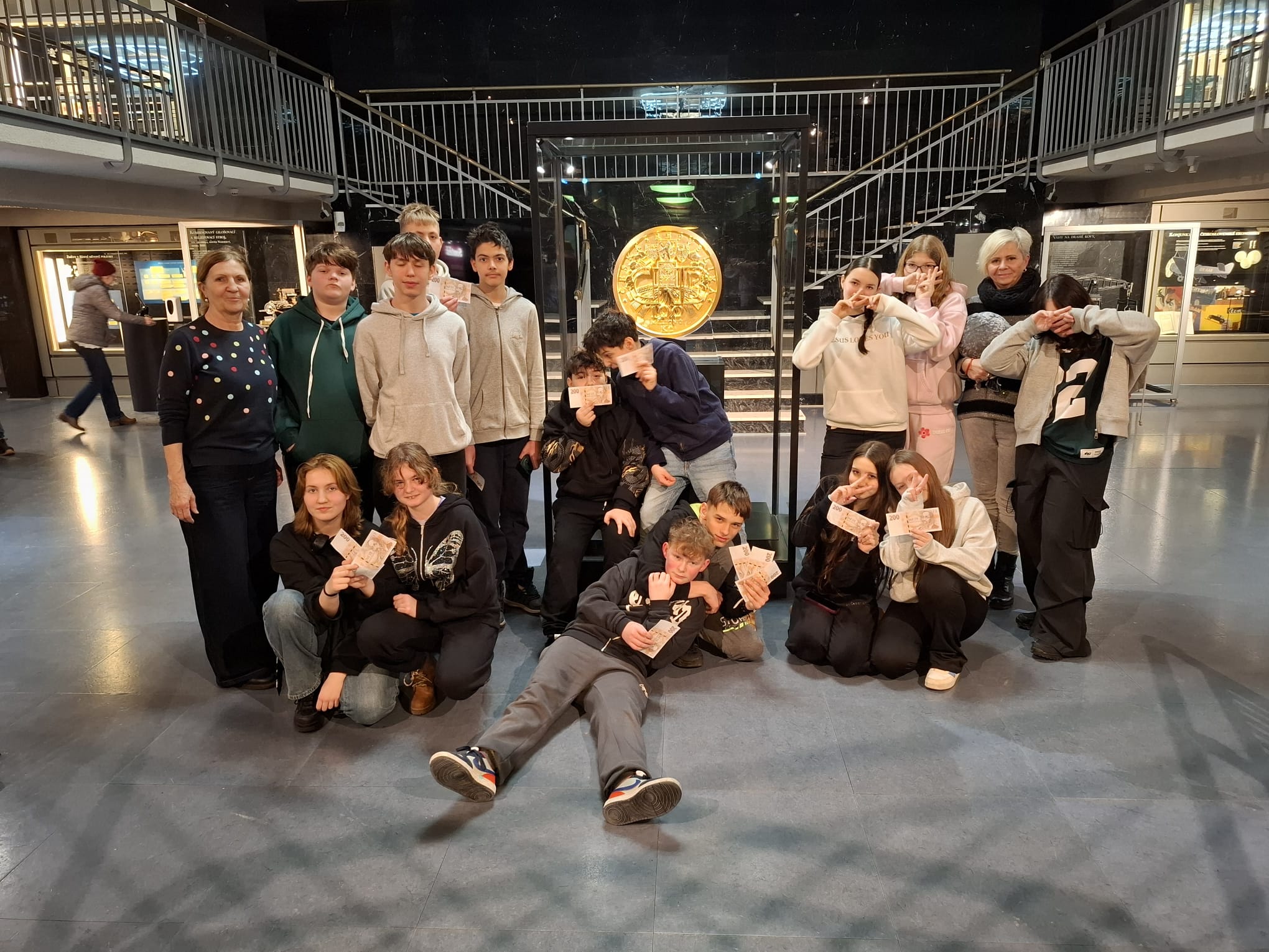 Dne 11. 2. navštívili žáci tříd 7.A a 7.C Českou národní banku. Žáky nejvíce zaujala zlatá mince z roku 2018 vydaná ke 100 výročí vzniku ČR v hodnotě 100 tis. Kč.