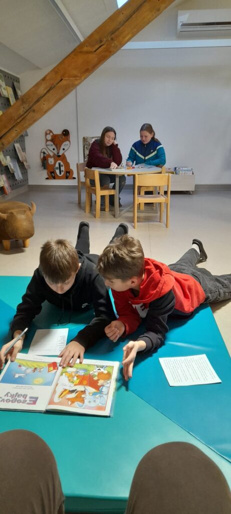 Dne 23. 2. jsme navštívili regionální knihovnu v Teplicích,která je po celkové rekonstrukci a je nádherná, zejména oddělení pro děti. Seznámili jsme se s tím, jak se tvoří příběh s různými liter.žánry. Poté si dvojice ověřovali v připravených úkolech, co si zapamatovaly a své poznatky postupně prezentovaly. V Knihovně se nám líbilo a všem doporučujeme navštívit.